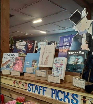 It is winter and as I type this, there are flakes of snow speeding about outside the window. And how can you not remember the times you were a kid and went out in the snow to play on a day like this? (Okay, maybe not in Hawaii or someplace equally warm….) But I remember the boots, hats, mittens (with mittens attached to a string that went around your back to the other mitten, so you didn’t lose it…) and snowsuits (that were magic: once on, you had to go to the bathroom.) Soooo, maybe not so magical, which is why I like reading about snow in books now. And these two picture books fit the bill perfectly.