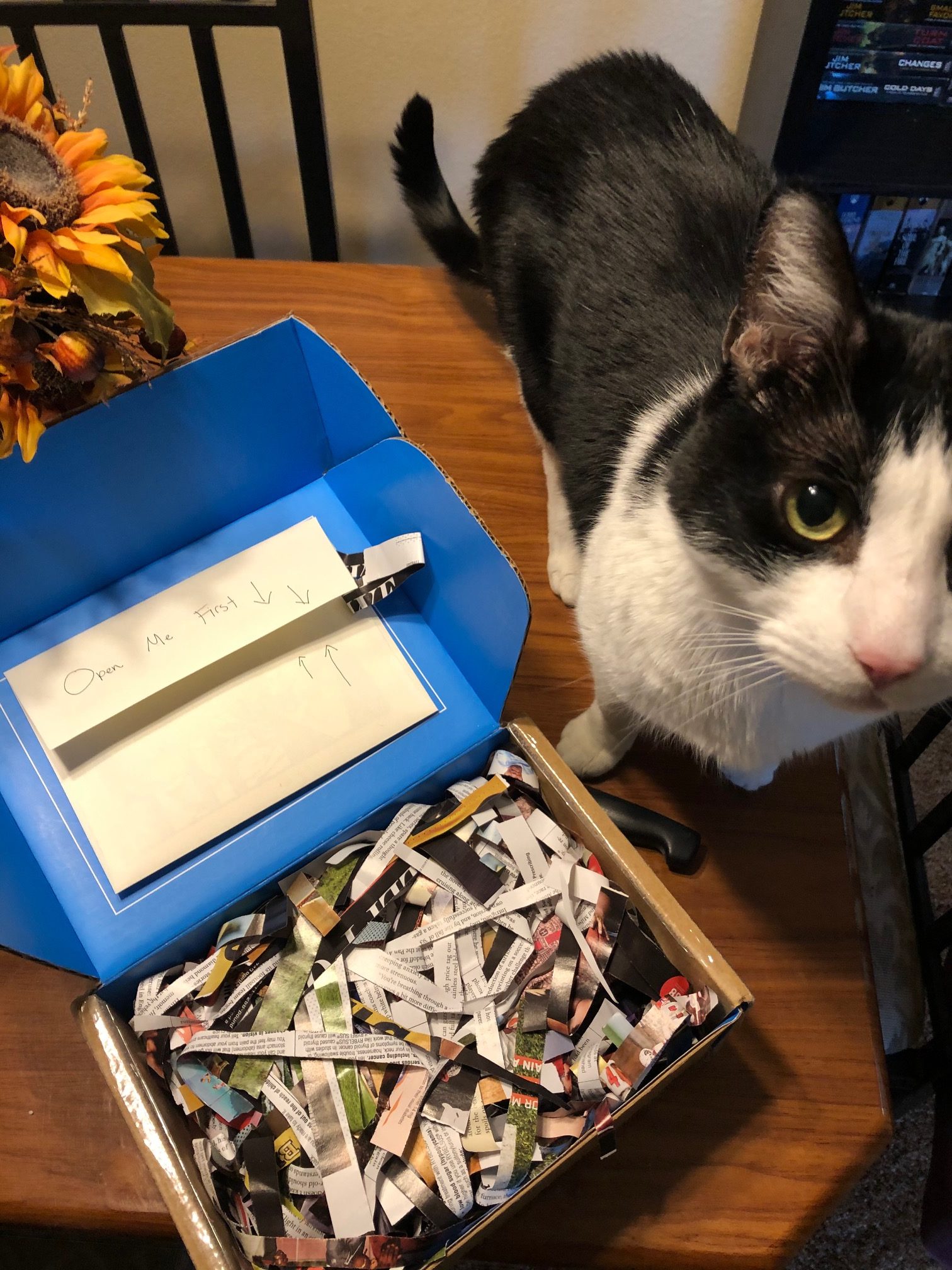 Hal was very interested in all the proceedings and I had to chase him away from smelling all of it and trying to eat all the fun paper bits. He also wanted to be in almost all the pictures.