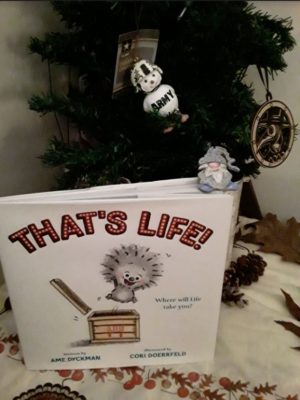 That’s Life by Ame Dyckman is a goofy look at how wonderful, silly, and even hard, life can be. I do not know what Life actual is (A dust bunny? A hedgehog? A porcupine? Ame Dyckman in a furry gray suit?) but Life sure does have a good time in this easy picture book. And while it is simple, even a tad simplistic; and the illustrations also are minimal detailed and color (but good details and colors that are needed). The illustrations are by Cori Doerrfeld. And the subject is anything but simple. And even the simplistic nature of the illustrations is not a bad thing. There is just what is needed with color and detail usage to move the story along (like I said above).