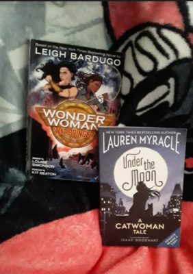 I started with Under the Moon: A Catwoman Tale by Lauren Myracle. It is an origin story that takes some of the things we know about Catwoman and adds new twists and turns. Familiar characters (and new ones) play a part in making the girl, Selina Kyle, into Catwoman. We follow teenage Selina deal with her mother’s abusive boyfriends, deal with school, trying to make a few friends, her relationship with a young man named Bruce Wayne and the events that allow her to become a queen of crime. Things have become modernized; the looks and characters are both “new looking” and have an interesting classical vibe. Some characters you can guess might become other people, but that is less obvious than in the Batman story (next review). Isaac Goodhart’s illustrations are traditional graphic novel art with little to no real color (or at least in my reader copy). The details are both detailed and sparse depending on the needs and the panel size. One needs to read both text and art to get the entire picture (much of Selina’s anger, hurt and even madness comes out in them). There is a not a lot of action to start with, this is a buildup and not so much the “Criminal Years.” There are a few heists, danger, and a couple of fights. There is the theme of making your own choices and a possible cult (which I am trying to figure out why that is thrown in at the end).