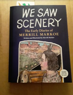 I had not heard of Merrill Markoe before I asked for a reader copy of, We Saw Scenery: the Early Diaries of Merrill Markoe. (Later I realized I must have heard her writing due to her resume.) I misplaced the copy I received (story of my life: I would lose my head if it wasn’t screwed on) but found it the other day (it was hiding under my desk…don’t ask why I was under my desk….)