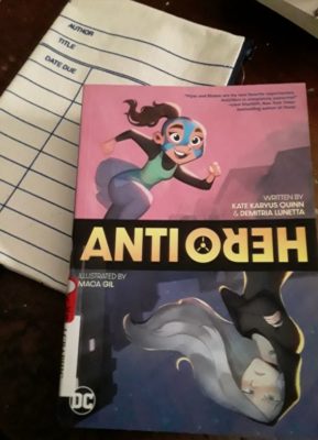 Anti/Hero is a middle school graphic novel about superhero Hummingbird and Grey Owl (formerly known as Grey, villain) coming to Gotham. First, Hummingbird is a bit of an anti-hero (she makes more destruction than save the days) and Grey is a baddie through and almost through. Yet, when an accident causes the two to switch bodies, all heck breaks loose.