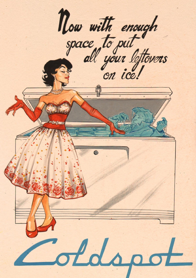chapters are interspersed with clever mock advertisements: ice chests big enough to put all your leftovers (i.e., bodies) on ice, cars that are stylish enough for her, and roomy enough for everyone else (again, bodies). I’m honestly giving these books 4 stars on the strength of the artwork alone.
