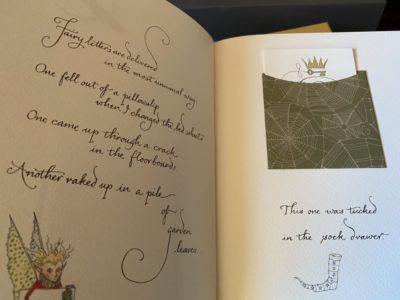 The book is simply written and aimed at children being a simple tale set out in elegant handwriting with the fairy letters being presented as little pop up or pull out pieces. There’s also a little illustrated guide to fairies as a built in pamphlet. The purpose of this book is to be something lovely that you can share and treasure with its high quality parchment, elegant layout, and well constructed little pockets of content.