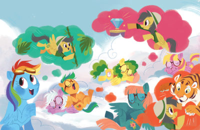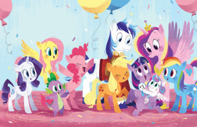 And last but not least (as there is another one coming sometime “soon”) is Twilight Sparkle: Best Aunt Ever! (If you have not guessed, I picked that one because it is the pony he likes. And I am!) May and Persico are credited as the ones who put pen and paper together (or however it is done today) and created text and art. This time the pony friends want to create a party for their friend TS and of course, there are things that happen, but nothing that friendship cannot fix.