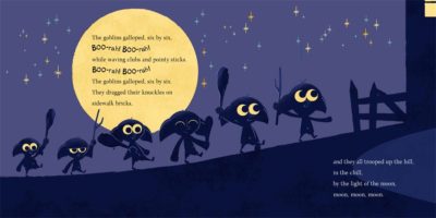All ages can enjoy this book. The little goblins can have it read (and song, because if you do not hear the song in your head, I do not think we can be friends) and the beginning readers will love the rhymes and early reading text. Counting, numbers and rhyming all come together in one book that frankly, I would read anytime of the year, not just the most holy of holy holiday, Halloween.