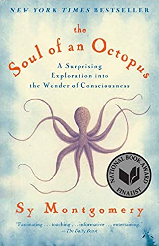 The Soul of an Octopus follows author Sy Montgomery’s quest to get to know octopuses. She does this largely by spending time with the octopus keepers and their charges at the New England Aquarium, with a side trip diving in the Caribbean to see their wild brethren. Montgomery is effusive in her enthusiasm for octopuses and describes how she weeps tears of joy the first time she sees one in the wild. And why shouldn’t she? Octopuses are amazing creatures, invertebrates with three hearts and nine brains who can change color in response to mood or to camouflage themselves. They are renowned escape artists with a decentralized nervous system unlike anything we know of in the vertebrate world.