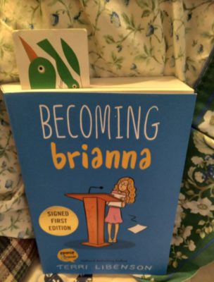 Becoming Brianna is a fun story about becoming yourself and learning about your own beliefs, and what you want to do vs what you want to do for others. Terri Libenson has brought Brianna back for her own (mostly) solo story. The events of this book are taking place while the previous book is also happening. However, you are not seeing those events, they are just mentioned. And while it would be a good idea to read the previous books, this graphic novel is a standalone story. It is simple, straight forward. The “then and nows” (as Brianna has flashbacks and “back to the present” moments) are clearly marked and you know who is who and what is going on. It is a comfortable read.