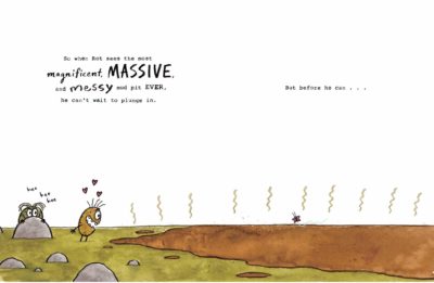 Our hero Rot is not just a mutant potato. No, Rot is like other people with emotions, wanting adventures, has a sibling and just wants to have fun. But “today” he must face his fears about the Squrim. Which his older brother, Snot, told him lives in the magnificent mud pit Rot wants to play in. Of course, little brother finds a way to overcome his fears and gets back at that pesky older brother of his.
