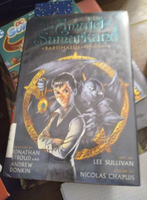 The Amulet of Samarkand The Graphic Novel is Jonathan Stroud’s novel of the same name adapted by Andrew Donkin. The Bartimaeus Trilogy (or possibly there is a fourth, as I left the sales floor after only three) is a fantasy novel (or graphic novel) where a young magicians apprentice is humiliated by another magician and decides to take a little revenge. What happens is a very mischievous and basically cruel djinni is summoned by our young wizard to be and the sparks, feathers, and magic flies. It is a stereotypical fantasy: do not give your real name, do not conquer outside your station/abilities, mystery, and intrigue. It is obvious who is good, bad and the ugly. It is a fantasy adventure of magic and things are not always what they seem or black and white. Sometimes the grey is deadly.