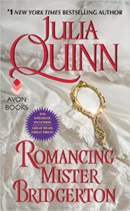 This takes place about 10 years after the first book. Penelope Featherington is 28 years old now, and is firmly on the shelf. This gives her more freedom, in that her mother is no longer trying so hard to marry her off. She never fell out of love with Colin Bridgerton, though. We find out when she fell in love with him, which is cute. Speaking of Colin, he’s finally come home from his travels abroad, I believe for his mother’s birthday party. Colin likes Penelope just fine, but he sees her as his sister’s friend, and nothing more. Until something changes. Amidst all this, while all agree that the season is particularly dull that year, Lady Danbury creates the diversion of offering 1,000 pounds to the person who can “unmask” Lady Whistledown. That’s over $165,000! We know who Lady Whistedown is, of course, so it’s understandable why this would cause problems. (We also learn just how much money Penelope has made from her paper – over a million pounds in today’s money, which is also well over a million dollars! If each paper costs the consumer 5 pennies, that would be 6 pounds, or over $8. And it was a very popular paper!) (Wait, looking back, in the beginning of the book, Colin offers Penelope 20 pounds to not be left alone with Lady Danbury. That would be offering over $3,000 today!)