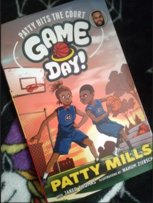 Sometimes finding a book is more interesting than the book itself. When I found Patty Mills book, I was looking to see if we had a book in stock even though our system said we didn’t. This was due to a royal mess up from the publisher, but of course, I could not be that lucky. However, instead, I found two books that I wanted to read. One was a graphic novel (Agent 9: Flood-A-Geddon!) and this book: Game Day!: Patty Hits the Court.