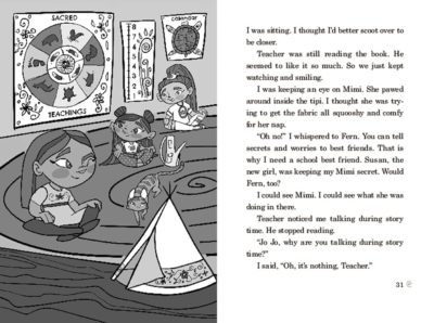 I would answer because Dawn Quigley wants to show kids out there who she is, who the people who surround Jo Jo are and just wants a fun character. The best part of Quigley’s character is, she could be anyone or anything (even a purple people eater) and she would be relatable, fun, and goofy. Jo Jo is “every kid” who happens to be of the Ojibwe people. And at the same time, you are learning about a people whom you might not be familiar with. I know I was not. Therefore, I was entertained and educated all at once.
