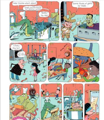 Sadly, then there are the illustrations of Pierre Foiullet. As usual, I appreciate the effort and time that goes into creating illustrations. However, this time, I did not appreciate the artwork itself. It is cartoony, simplistic, and there for the gag factor (sometimes figuratively and sometimes literally).