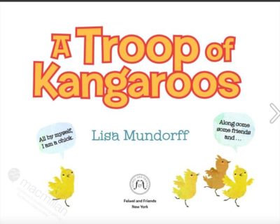A Troop of Kangaroos: A Book of Animal Group Names (written and illustrated by Lisa Mundorff) is a clever book about names. And not just “Kathy Kangaroo” or “Sammy Sardine” or “Bob Otter.” No, I mean that a group of sardines is call a family. A bunch of kangaroos are called a troop. And a bunch of skunks are a real stench. No, really a stench of skunks.
