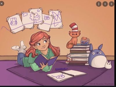 If you know Hallion’s work, you know that they are famous for “girl power” and “positive messages.” Her characters range from Hermione Granger to Steve Irwin to Mr. Rogers to Wonder Woman to the sisters of the movie White Christmas, to Hamilton to several Star Wars characters to Stacy Abrams to the Statue of Liberty to a few young girls who are you, me, and all “us gals” out there. She also has a young gal that represents herself who is also the star of the book.