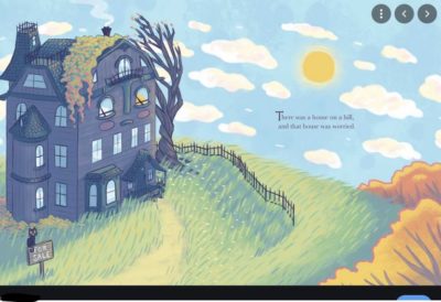 Jessie Sima has written, as well as illustrated, a picture book that is about a house who is afraid she is haunted! She does not want to be haunted. Therefore, she tries to stay calm so doors do not creak. She tries to make sure things are not spooky and that those odd sounds do not come from her. Yet, one day she has an experience that changes her feelings and she realizes that being haunted might not be so bad after all, especially when the right family finds you!