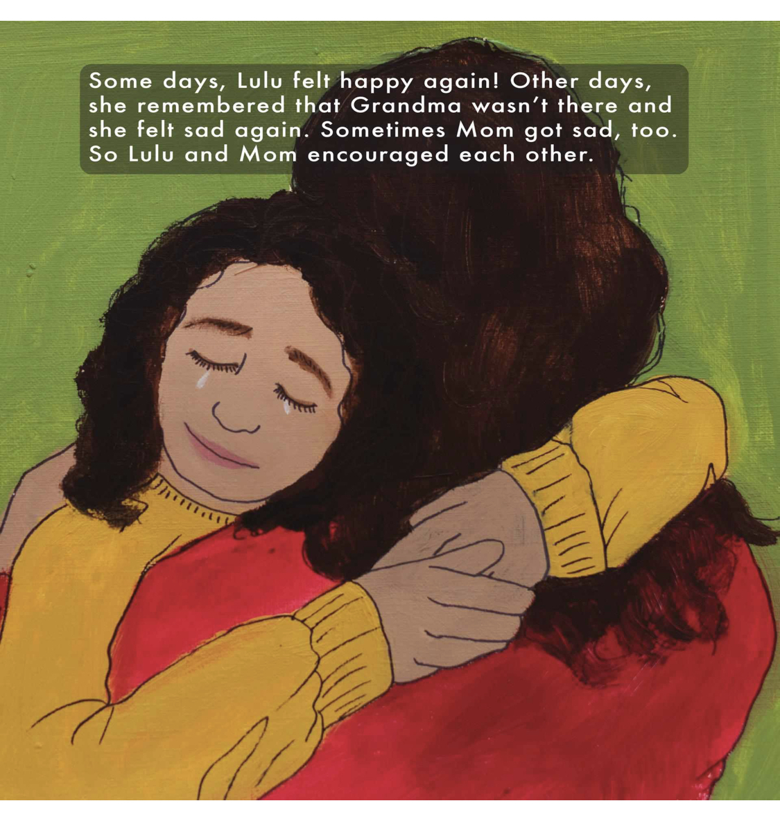 The best part of Lulu Faces Loss & Finds Encouragement, for me, was that the author then continued the story after her grandmother’s passing. We see Lulu and her mom & Grandpa facing their loss together, we see them grieving and being sad, we see them embracing & encouraging each other through the hardest days. The idea that Lulu is an active participant in both the loss and encouragement aspects of death and grieving is the selling point of this story for me: It gives kids a way to move forward in their grief, letting them feel like there are concrete steps to take in order to help them – and their families – heal. Too often, books about grieving for younger children forget that they might feel helpless in this new arena of their lives, and don’t give them tools to help them feel more in control while they’re going through it.