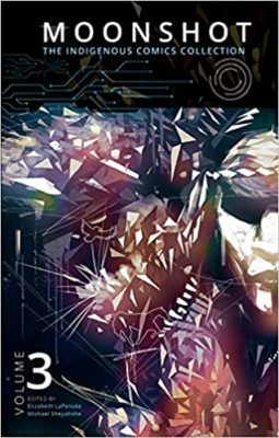 That quote in the title of these reviews comes from Michael Sheyahshe’s introduction to Moonshot: Volume 1 and it serves as a rallying cry for all three volumes. The Moonshot series, published in 2015, 2017 and 2019, is, as the title says, a collection of comics written and drawn by Indigenous writers and artists. These volumes were also published and distributed by Avani and Inhabit Education Books, which are Inuit owned. The reason for the volumes is pretty obvious — Indigenous people have had very little representation in comics, and that which has appeared has often been stereotypical in nature. Each volume contains a dozen or more stories which might surprise readers and artwork which will blow you away.