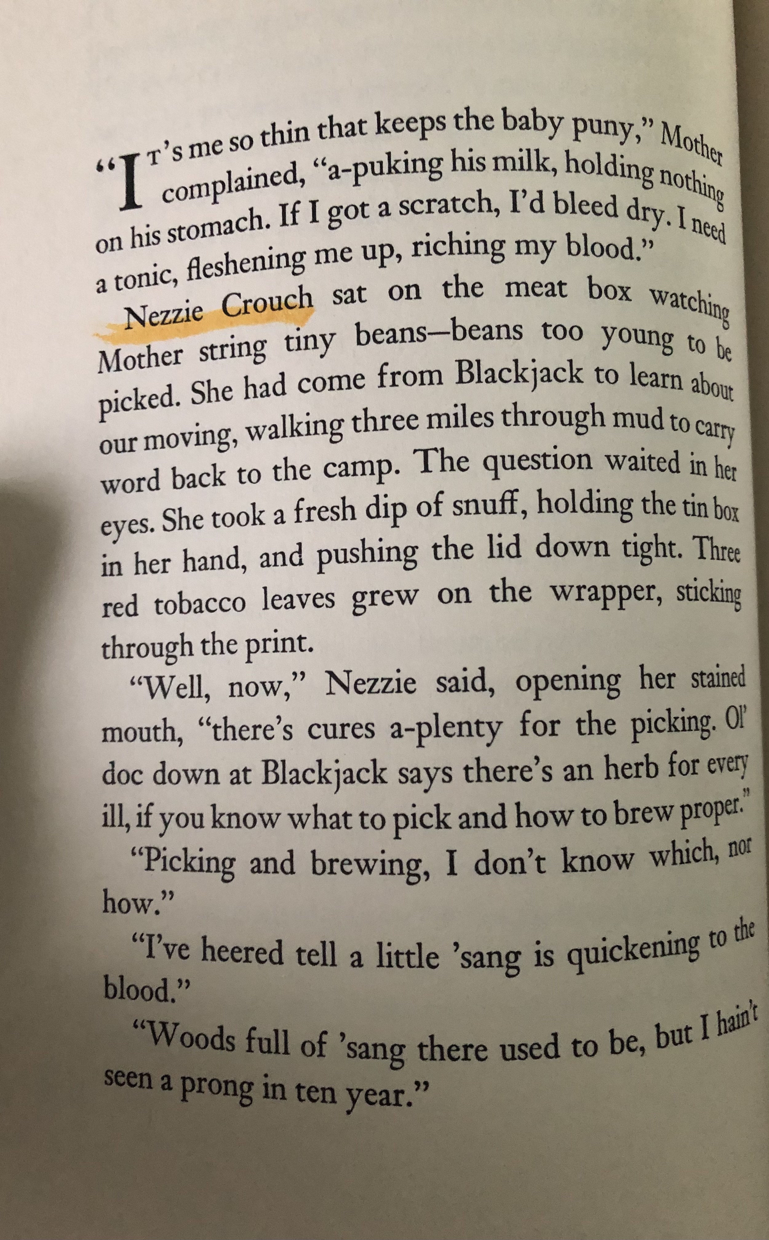 Also making it American is the focus on language and names. The names, especially if you’re not used to them, are both wonderful and distracting. Whoever owned my copy before me literally underlined every single name in this book. Also, the dialect, which is always a little fraught in books, is prevalent here. It’s a very good novel in so many ways however.