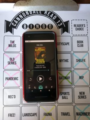 Side Jobs contains eleven short stories, little adventures that happen between the novels. Some were written for promotional reasons and some were written at the invitation of anthology editors. These stories occur from before Storm Front to just after Changes. This was my first audio book experience and I enjoyed it immensely. Ardaigle’s waxing rhapsodic over James Marster’s narration convinced me that I needed to hear it for myself. And I’m glad I did! Marster’s has a great voice and listening to him has made the past month of health stomps much more enjoyable. I chose Side Jobs as I couldn’t remember if I had read it. Conclusion: No, I hadn’t but I had read one or two stories from other sources.