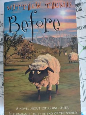 So for me, this book is basically what Good Omens would have been had it been set in 1999 (ie end of the world/millennium references abound) and written by Terry Pratchett exclusively. I have nothing against Neil Gaiman, but he definitely has the darker tone and less openly funny humor (ie no humorous footnotes). Before & After is essentially Good Omens, except it stars an approximately 500-year old history professor who may have used to the name Nostradamus in his earlier years, his student Deborah, and a cat named Aristotle as the main protagonists, so this would be both the Aziraphale/Corwley and Them roles combined. They have to prevent the end of the world which is set to be the war between Heaven and Hell’s forces. The book begins first with a scene demonstrating what the excerpt of “The Lost Prophecies of Nostradamus” cited at the beginning of the first chapter states: “The sheep shall be the first sign. Those that hop and frolic shall detonate with great concussions, The strongest glues will not hold them, their suffering will go unheeded, Until the Great Triangles depart.” The funny part is that that opening scene takes place from the perspective of the sheep involved.