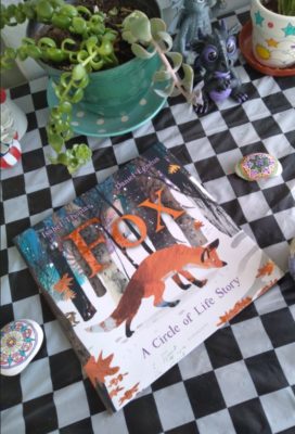 I was thinking Fox: A Circle of Life Story was going to be more about the cycle of trees, plants, the seasons, the forest and not about the cycle of life of a mother fox. Isabel Thomas created a poetic, beautiful story of life and death. We follow a fox as she wanders the woods, crossing the human road, and her unfortunate end. The concept of death is lightly presented, but also nothing is held back. It is a serious look at the cycle of life.
