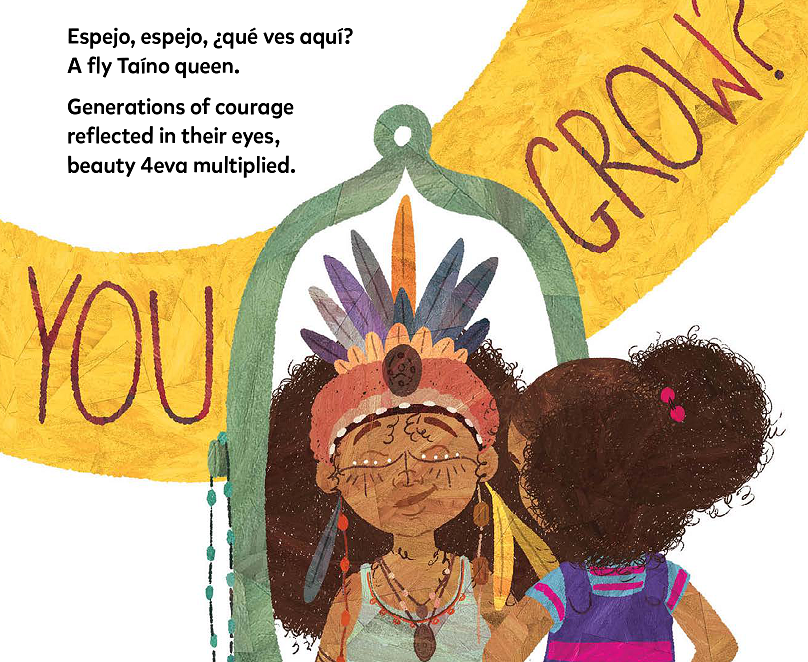 Then there’s the text, and it’s strikingly amazing. Ramos pulls off all sorts of rhyming wizardry – y’all know how particular I am about rhyme schemes, and this one hit every mark it went for, and more. The more? Adding text in slang, textspeak, AAVE, Spanish, and (according the author’s Goodreads comment I just saw when I went to post this review) “Spanglish”, in an amalgam of different accents & languages that just blend into a really accurate portrayal of the kind of language all the multilingual kids I know actually speak. And yes, we count AAVE and slang as languages, and I wrote about why, but I’m going to just quote even more directly from the author, because she says it much better than I did.