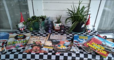 And with Rain we get a “The House that Jack Built” idea when it is a raining day. The rain comes causing chickens to squawk, dogs to bark and babies to cry. Not to mention the traffic and people getting all tangled up. Everything keeps building up on the last thing while everyone is grumpy and arguing. That is, until something special happens. I was not as pleased with this book as others I have read (I do enjoy his Duck series, and Stripes was fun, Pirate will catch your child, but the No David series and I are not friends). But this book has some fun images and goodies that will make you smile and brighten the day.