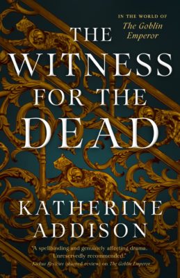 Similarly to the way I felt about Addison’s first novel (under this penname at least) The Goblin Emperor, the names and the naming system and the worldbuilding are A LOT. Unlike with The Goblin Emperor, there is no glossary, and we are not joining a world as the fish out of water along with the main character like we were with Maia in the previous book. Our main character here, Thara Celehar, a Witness for the Dead, has been doing his job (and doing it very well) for decades. And though he hasn’t always lived in Amalo, his current city, he has lived there long enough to be very familiar with it. We are not. With any of it. It’s a lot to get used to. Seriously, four times I had to start over. And the fourth time I had to force myself through the first fifty pages, which is about when the naming conventions and other cultural stuff started to stick, though I still was mixing up characters all the way to the end of the novel.