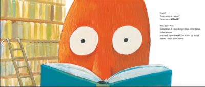 will keep you awake. This book is silly and fun. You will love it or hate it. There is little in between. Jory John writes about the reluctant sleeper and the odd things that could get you moving and grooving. Or to pass out in dreamland. Olivier Tallec’s illustrations are filled with minimal but important stuff. Sometimes they can look awkward, but they fit the goofy tone.