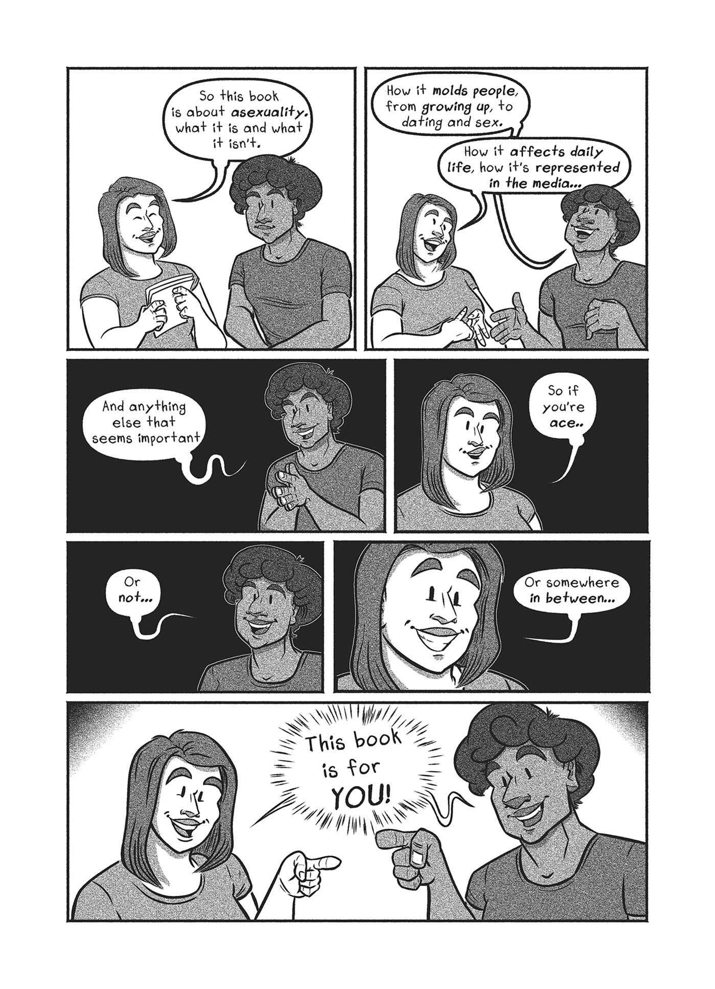 But back to Molly Muldoon and Will Hernandez’ A Quick and Easy Guide to Asexuality. It is a lovely and joyful short comic doing exactly what it says on the tin – providing a quick introductory guide to asexuality. At this point, I’ve moved beyond this level of introduction, but even two years ago, I could have used this. I liked the friendly artwork. I liked breadth of covered topics. I liked the very clear message that we are all more than our labels, and that attraction and love are a spectrum. This would be an excellent addition to any library where teens and young adults (or older adults who had no idea asexuality was a thing) are looking for information.