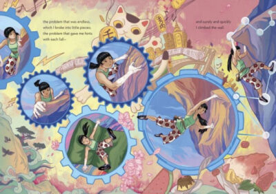 Yao Xiao compliments the text with bold, detailed, and richly colored illustrations. They show not only the artistic aspects (Shiraishi’s colorful clothing) but the scientific and mathematical ways the problems are solved.
