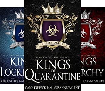 This quartet has been all over my Kindle Unlimited recommendations as well as SmutTok. I was hesitant to give it a try – for while I seem to have an enormous weakness for romances featuring alphaholes (Hey, Kristen Ashley and JR Ward, I’m looking at you…), I’m not a huge fan of bully romances. And Kings of Quarantine, Kings of Lockdown, Kings of Anarchy and Queen of Quarantine all live up to their tagline: Brutal Boys of Everlake Prep. It is a finger scorching, reverse harem, enemies to lovers, bully romance series.