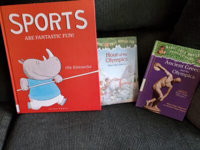 Also in our nonfiction section was Ancient Greece and the Olympics, which is a nonfiction companion book to one of the Magic Tree House books, Hour of the Olympics. The series is very popular with kids, so I decided to see what it was all about.