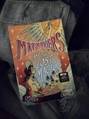 Mapmakers and the Lost Magic (A Graphic Novel) is an odd little story. At first it seemed like Cameron Chittock was creating it to be straightforward: Alidade, a young girl of the village, wants to leave. You assume that she will learn “there is no place like home” but it quickly takes a turn for the slightly darker. There are the guards that stop anyone from leaving the village, they curb individuality, and are controlled by a woman who (due to illustrations placing her in stereotypical villain poses, giving accent to her sneers, and how she’s dressed) oozes false charm and of course, “Hey I’m the Bad Guy” vibes. When Alidade accidentally wakes ancient magic, things start to go towards a more “the village keeps its head down and won’t rebel, but when the right time happens, cue the Rebels!”