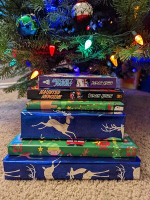 This is a strange one, the ghost story aspect in particular. Evie is emotionally all over the place, bouncing between confident heroine to a crying mess as she doubts herself, which is the result of pregnancy hormones jerking her around. The pregnancy felt plot device-ish. Evie starts off with severe nausea issues and needing to nap multiple times a day but that seems to completely clear up once she’s at Morgan. Maybe I’m especially sensitive having had two children. I did not care for the distance between her and Nate. They already spent a book separate and coming together at the end, I didn’t expect to go through that arc again.