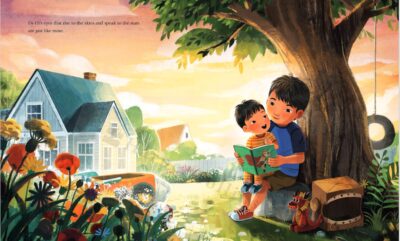 While gorgeously illustrated, Eyes That Speak to the Stars is a repeat of the companion book Eyes That Kiss in the Corners also by Joanna Ho and Dung Ho. However, that is not to say it is not as delightful as the first book, but I was looking for something slightly different.
