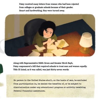 In Fall Down Seven Times, Stand Up Eight: Patsy Takemoto Mink and the Fight for Title IX by Jen Bryant brings to life a woman that many might not know. She shows the ups and downs of trying to make the country a better place for everyone. She would deal with discrimination, her daughters car accident and almost not getting Title IX into law.