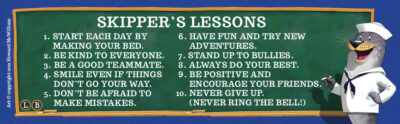 The art is cartoon based, colorful, lighthearted, and not overly with “wow factor.” There is nothing wrong with them, but they can feel a bit cliché at times. Kids will love the silly faces and antics, while adults will appreciate the message. An interesting feature is that every two to four pages or so will be one of the concepts McRaven wishes to send. There are marks showing what lesson you are reading about, marking good “chapters” for breaks.