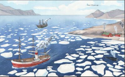 I have read other stories about whales who have lived for centuries, as I am sure you have, too. But what makes The Whale Who Swam Through Time: A Two-Hundred-Year Journey in the Artic so wonderful is the illustrations.