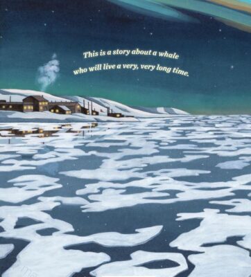 The story is nice, not overly pushy but gets the point across. You know this is a story not just about a whale that could live up to over 200 years-old, but an environmental book as well. Yet, when it comes to the art, that is where you can see how things move along, how they change and how the story might end someday. They are rich, lush and a perfect match for the text. They are detailed in ways that mean you must read them, too, as you cannot rely on text alone to tell the tale of this creature. They illustrate the changing of the ice, the land, the community that was started during the whaling years. You see how the times have changed, with the types of ships and the fact vehicles are seen. You watch as the whale grows and in a poetic nature documentary way, tells the story of their 200 years.