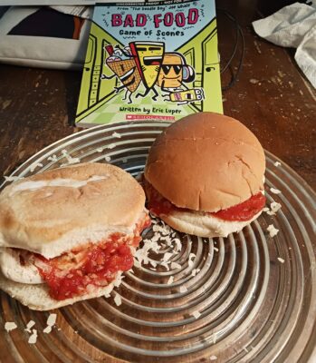 The pop culture comes in when we get a Game of Thrones wedding-meets-the-mafia-meeting, we get a hip-hop tater tot (that almost make my title rhyme good), and we see how even a couple of eggs can have a hard shell and get the job done without too much scrambling (just a lot of pepper). Also, there is mythology (a labyrinth in the library, so the hero’s journey continues) and more adult references that might be lost on the child reader, but still everything is aimed at a kid. I am just not sure I want to aim this book at a kid for reading. I think this is a case of read it first, know your reader and go from there.