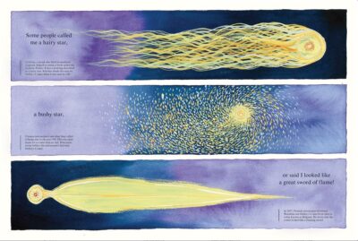 In Journey Around the Sun: The Story of Halley’s Comet we have the story of Halley’s Comet being told by the comet itself. The voice of the comet is friendly and almost like a beloved grandparent. James Gladstone makes something we can never see, or touch, come alive in a whole new way.