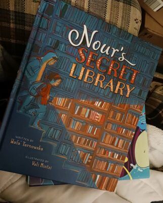 Nour’s Secret Library is a book that is about the power of books, the power of one person, the power of a community and how we can learn from each other instead of fighting. The emotional and chaotic images by Vali Mintzi show the ugly of war but also the hope people can find when looking.