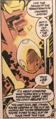 Peter David says he was inspired by sci-fi body horror like “the Fly” (and even name drops it in the pages).