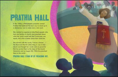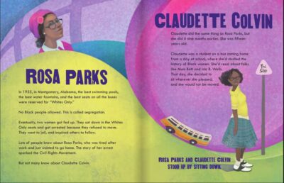 This book explores these ten women who did not just physically stand up (in fact two sat down), but who stood up for their rights. Many you might not have heard of like Claudette Colvin (who sat on a bus before Rosa Parks), or Prathia Hall who had Dr. Martin Luther King, Jr. take her “I have a dream” line, but others, like Parks, you know very well. And each one has a unique story of not staying quiet but doing something about the injustices around them. Some became Mayors and others started movements.