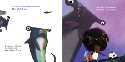 But as said, this is not a new idea. Or even the only book of the season with this theme, as there is Oona and the Shark (book two) by Kelly Dipucchio and illustrated by Raissa Figueroa. Oona quickly learns that no amount of boldness, loudness, parties, and inventions she makes, will make Stanley the Shark want to be friends with her. Of course, when she gets super frustrated about her lack of success, she goes off to her special place at the bottom of the ocean to think in her quiet spot. And that is when she realizes that maybe she has the answer after all. Since she knows what Stanley doesn’t like, she probably can figure out what he does. And she knows the perfect invention for that. Again, this is a story about listening to others and learning their boundaries and needs. And the illustrations are over-the-top cute. There are rich colors and fun details. Everything is simple, not simplistic and I felt was stronger than the first book of Oona’s.