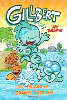 First, you should read the first three books in the series, as it will answer a few “who are you” questions in Gilbert #4: The Island of the Orange Turtles by Art Baltazar. And second, this book is way on the “little kid silly side” and adults may not appreciate the “slap sticky somewhat less than intelligent antics.”