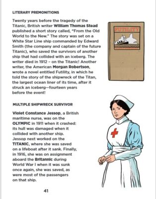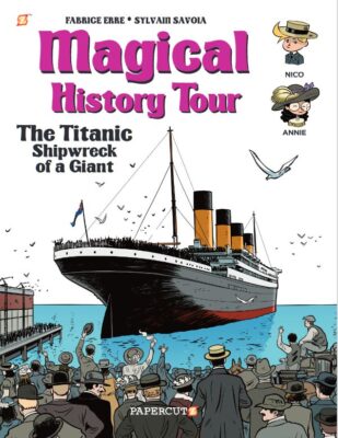 Finally, this last one is not a true sequel but another in a series of history books. Still, once you read almost nine books in one format style, you can start to dislike it. Yet, Magical History Tour #9: The Titanic keeps things fresh. Perhaps there are better Titanic books for kids out there, but Fabrice Erre’s nonfiction book is fun and has a few facts I have never seen before. And I went to the Titanic Museum in NYC several years ago. The story of Nico and Annie on the Titanic is a great introduction to the subject. And the afterwards with facts that did not smoothing fit into the narrative where even more fun and educational (in my opinion). Sylvain Savoia’s illustrations are clever and just as informative as the text.